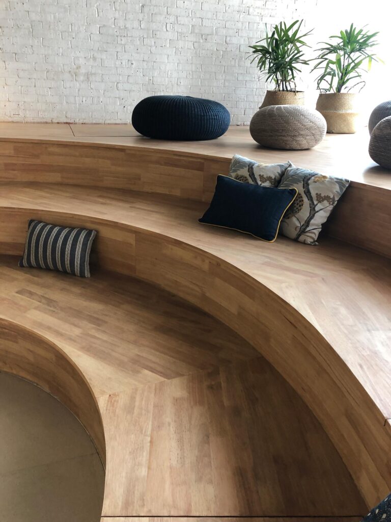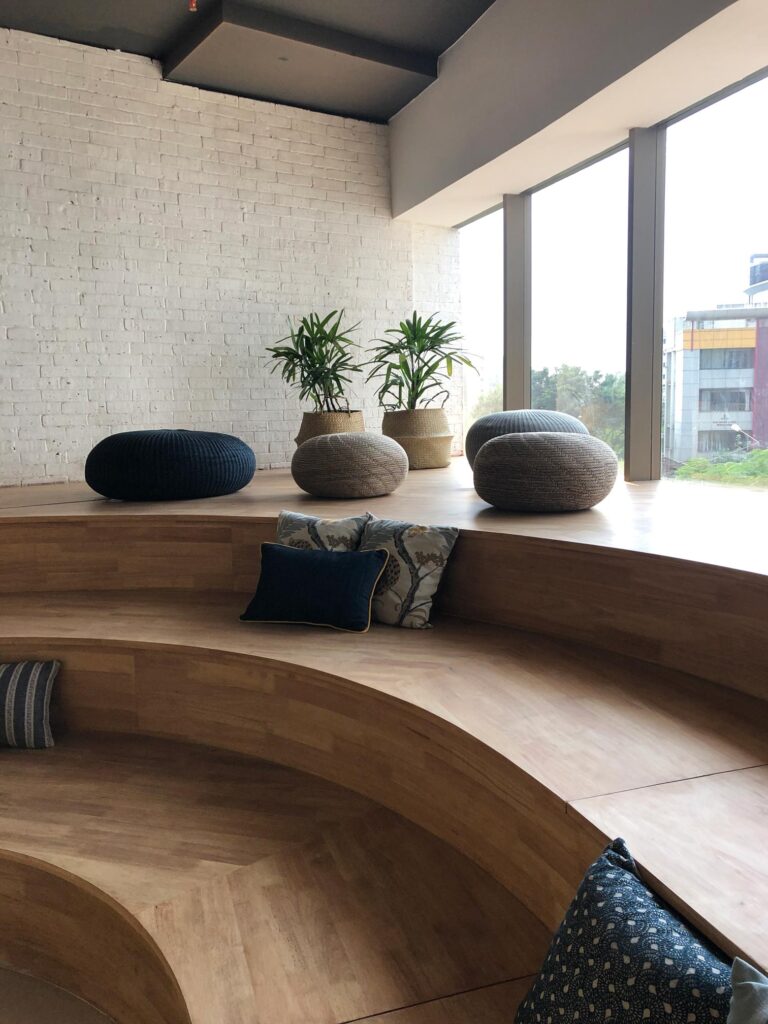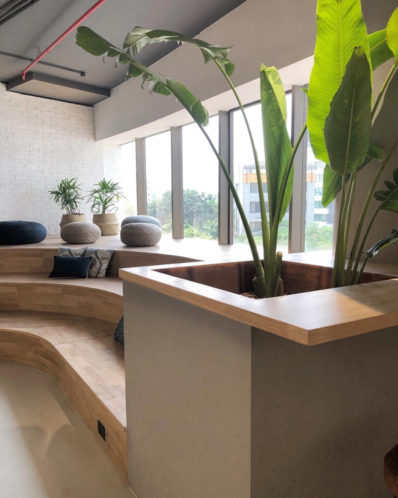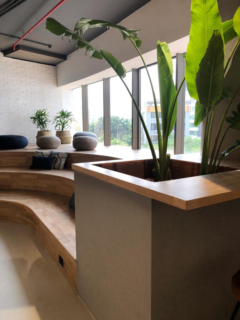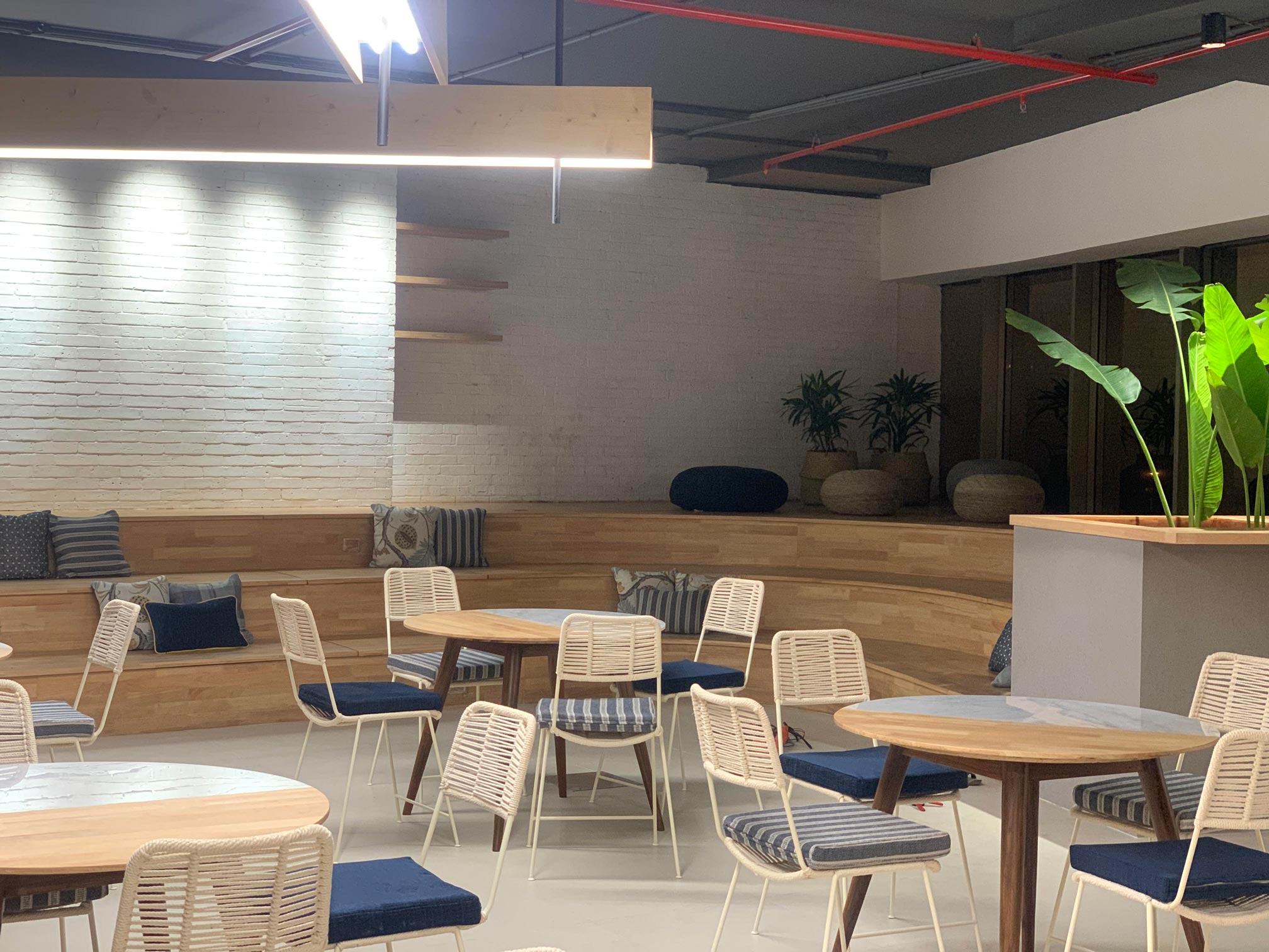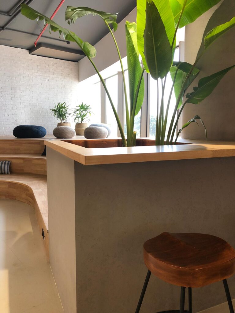 The interior adopts a dynamic open-plan layout, fostering flexibility and transparency while making the space feel connected and fluid. Informal zones are thoughtfully interwoven into the workspace, ensuring that collaboration isn’t limited to meeting rooms but can happen spontaneously at every corner. The café, with its casual vibe, anchors the social culture of the office and features mini amphitheater steps that double as a gathering spot for team discussions, informal events, or simply unwinding.