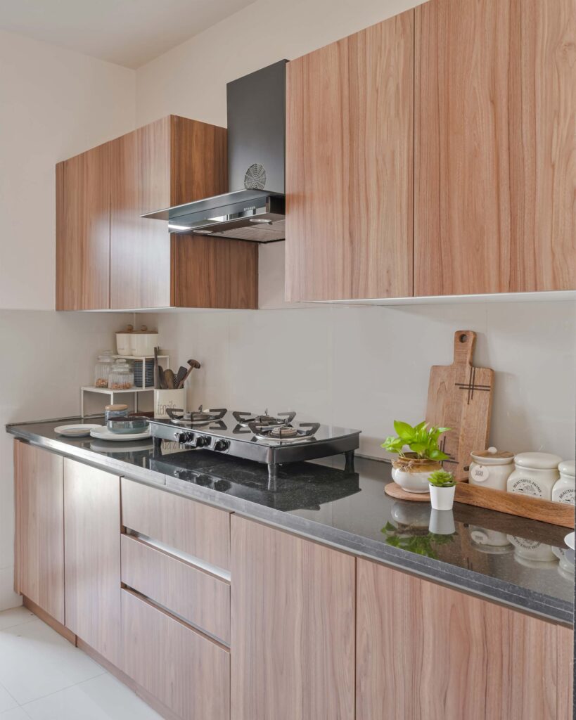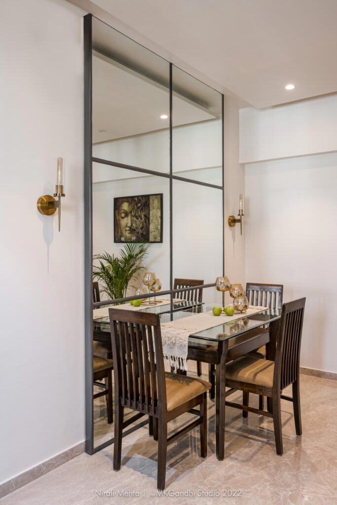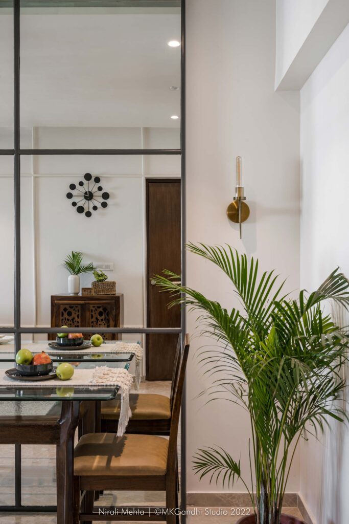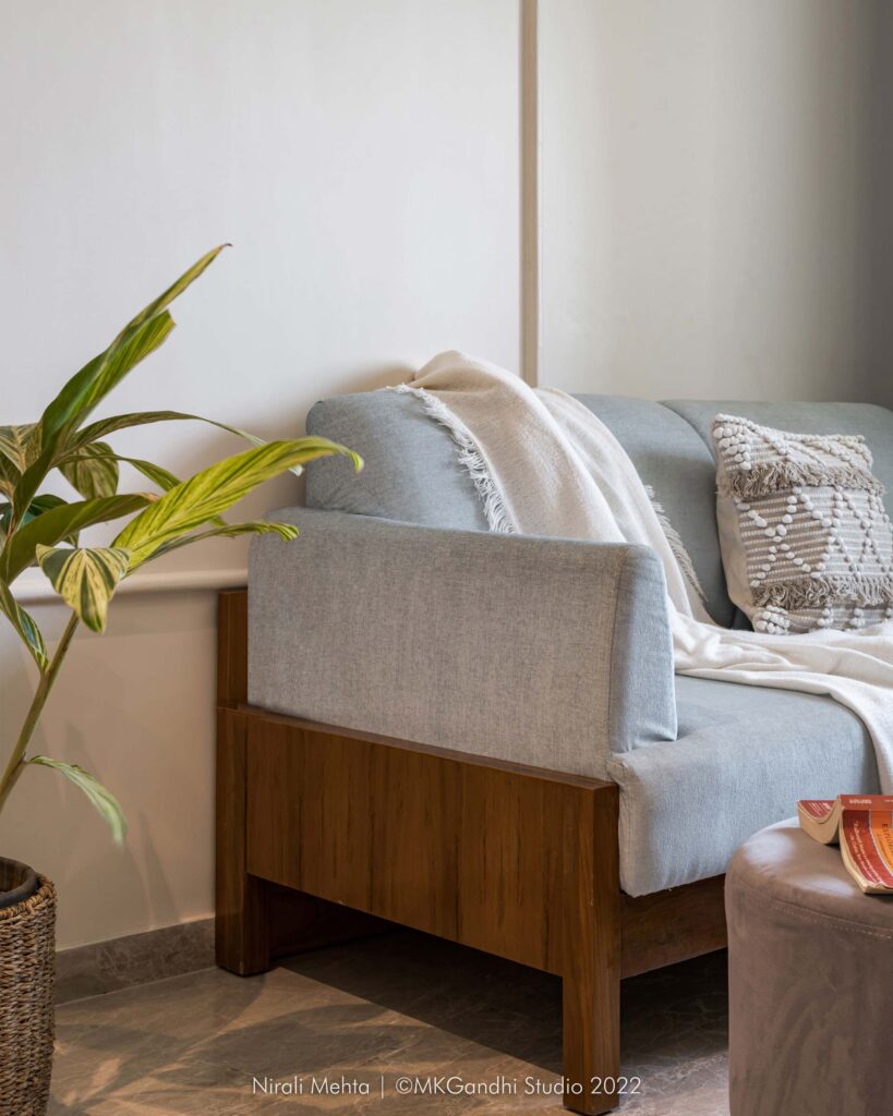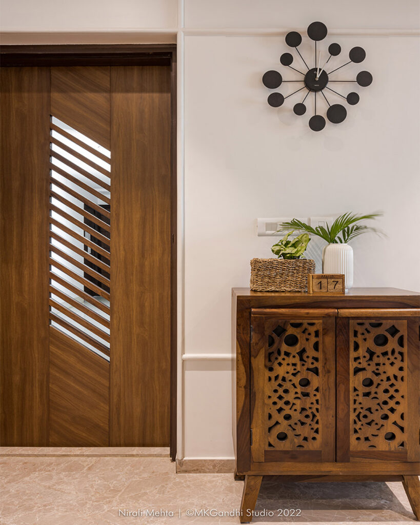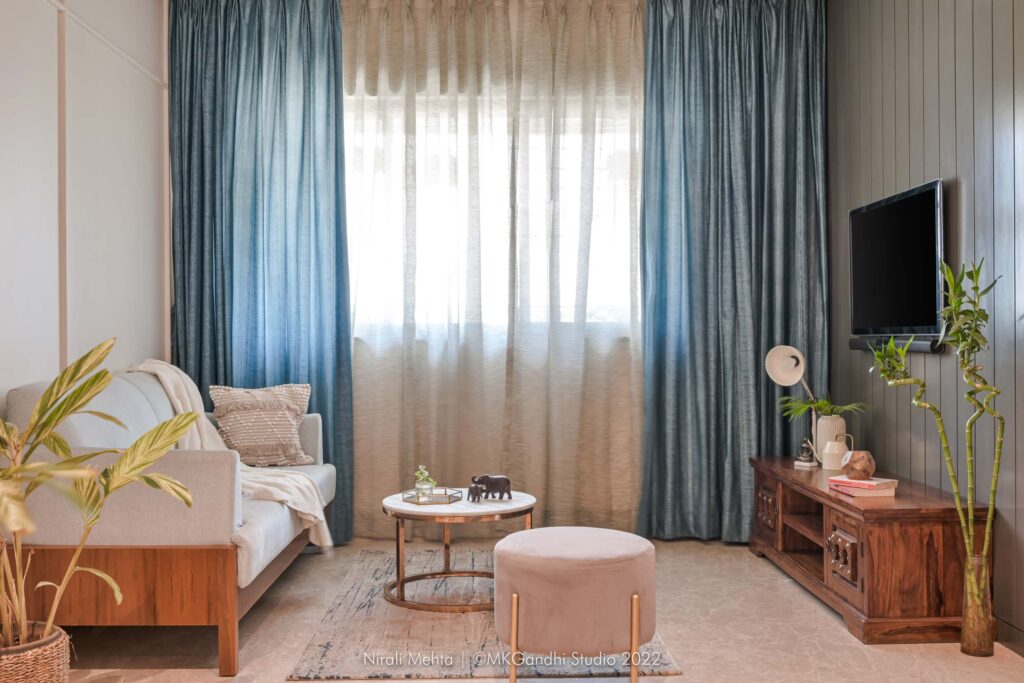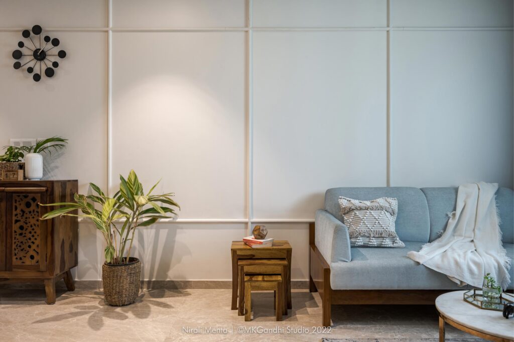Nestled in the quiet locality of Thane overlooking the salt pans, this 710 sq.ft 2BHK was designed as a home that radiates simplicity, elegance, and ease of care. The client envisioned a space that felt open and uncluttered, yet warm and inviting—a brief that guided every design choice.